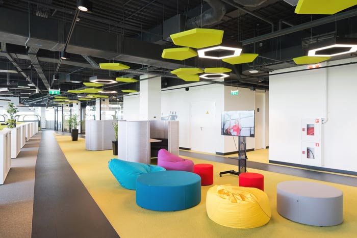 休息区域的设计:设计师在设计的时候,将其与培训区域合为一体,在设计师看来培训区域不会天天用到,故此设计师希望为此处带来活力,在此处给人的第一感觉就是放松,这样的感觉在如今的时代甚是难得,设计师希望让员工在此处与大自然融为一体,进入那梦寐以求的静心状态。