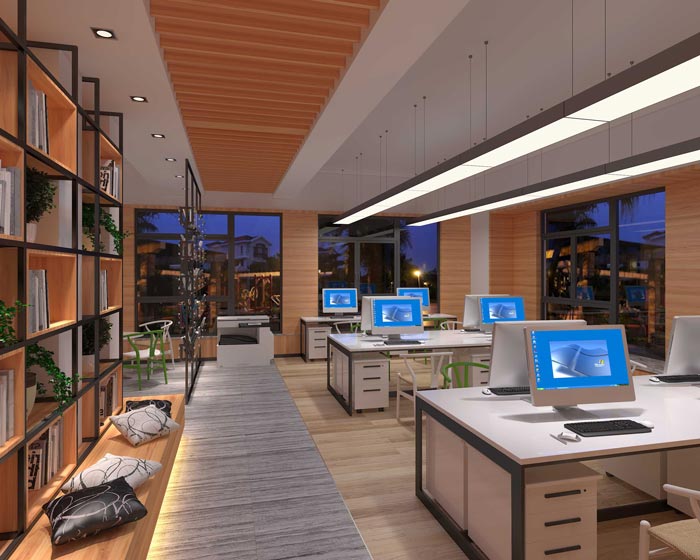 办公区域的设计,由于企业对于办公工位的需求不是很多,所以设计师采用长方形的设计手法将办公室区域放置在其中,一方面这样的设计可以使动线可以有效的连接各个区域,另一方面可以使员工感受到来自空间的善意、与企业的关心。