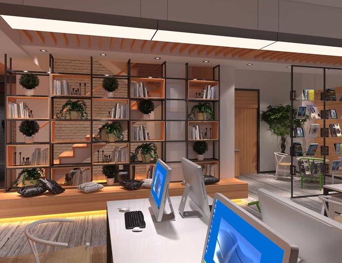 接待区域的设计,设计师在设计的时候,将其安置在办公室区域的一侧,整个空间按照4:6的比例对空间进行分离,4分为办公区域、6分为接待区域、休息区域、动线的结合,这样的设计将室内的空间有效的、合理的结合并加以利用。