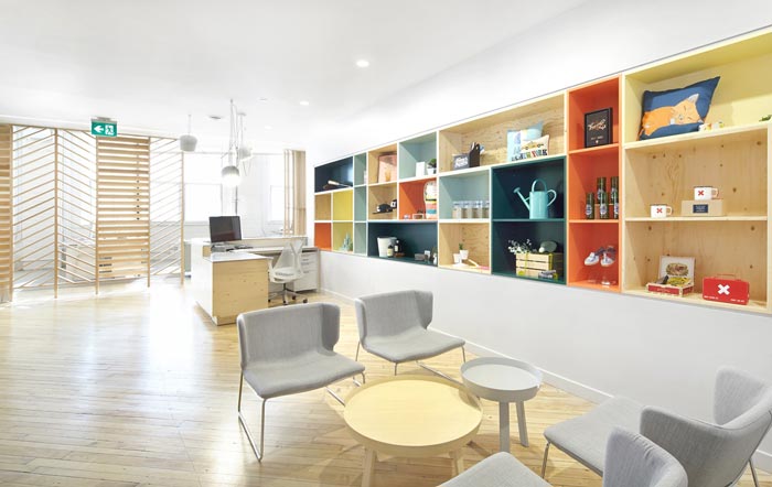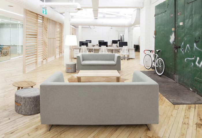 电子商务办公室空间连接设计:此处是区域和区域之间的连接处,通过此处可以进入每一个空间,这也是设计下来必然会形成的一个区域,故此设计师同样利用软装的力量,在此处搭建了休息区、交流区,即形成了一个全新的空间,又能保证空间的通畅运行。