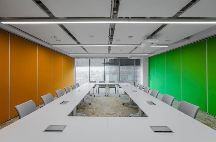 部门会议区域的设计:设计师要推行的就是配套设施的建立,在设计师看来加快办公的效率就要从基础做起,没有基础的配合一切都是无从谈起,故此设计师在设计中,在打造基础设施布置的同时,也在转化的方面深思了很多,故此此处既可以当做部门的会议室使用,也可以让员工在此处办公、休息、交流,设计师希望将每一个区域的作用发挥到最大。