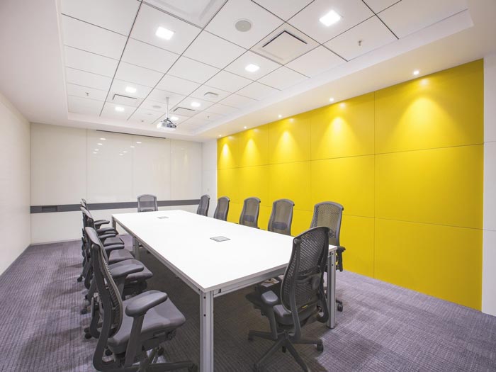 会议室的设计:设计师在设计的时候,考虑过很多设计手法,最后设计师还是决定采用色彩与简约相结合的方式,因为色彩让人感觉到生活与自然的魅力,简约让人心神更加开放,设计师希望会议在一个心神开放的空间之中进行,这样有利于员工之间的开诚布公与相互交流,色彩可以不断净化我们的心灵。