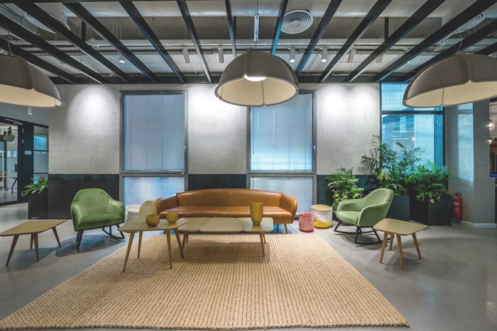 接待区域的设计:设计师在实体考察过之后,发现此次的空间是一个巨大的开放式空间,故此在考虑再三之后决定采用去前台的设计手法,将前台打造成一个接待区域,让客户进入后可以感受到浓浓的关切之情,这样正是设计师希望看到的,因为对于服务公司来说,服务态度是成功的重要标准。