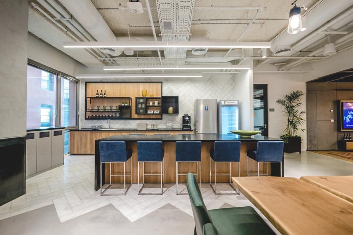 茶水间的设计:设计师在设计的时候,将其安置在靠窗的空间之中,在空间的设计上设计师采用咖啡厅的设计手法,设计师主要是希望营造咖啡厅式的空间氛围,让员工在此处可以远离工作的压力,让自身融入温馨的空间之中,让员工可以在此处休息、思考、归零。