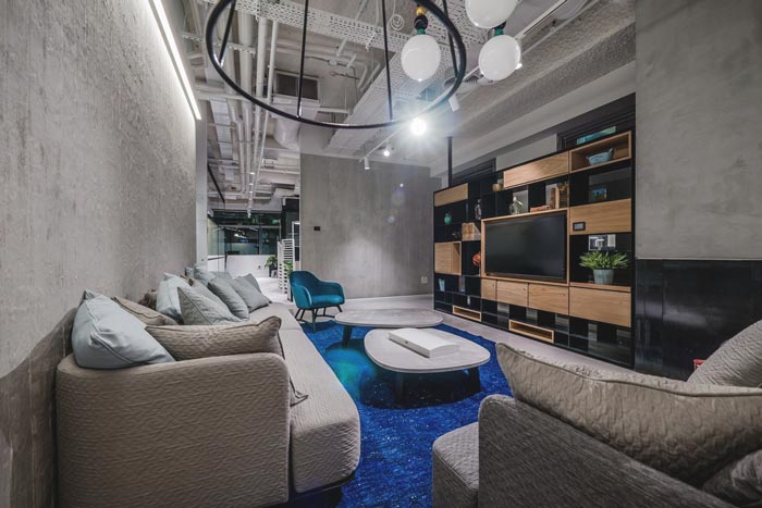 休息区域的设计:此处主要的目的就是让员工在这里休息、放松,在设计中设计师与客户达成共识,双方都认为企业未来的发展重点在员工身上,故此对于员工的身心双方都十分重视,此处给人的感觉像是客厅,目的就是希望员工可以企业之中找到家的感觉。