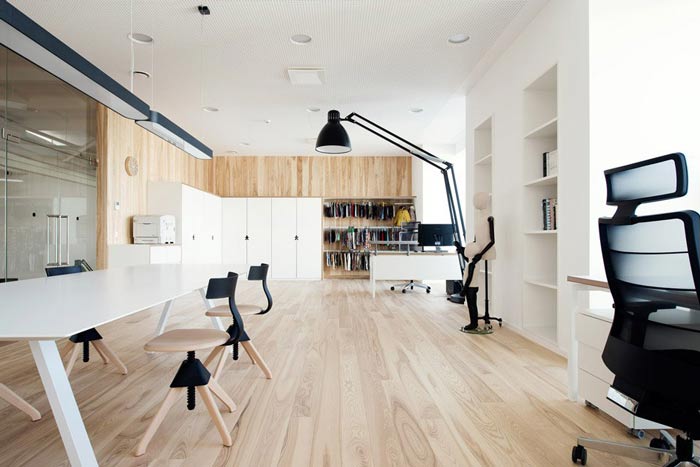 童装公司设计师办公室设计:设计师将服装设计师安置在一个独立的空间之中,在这里他们不会受到任何打扰,同时办公所需应有尽有,此处像是一个独立的小型世界,在这里为设计师提供优越的办公环境。