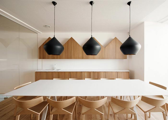 童装公司办公室茶水间设计:整个空间一尘不染,让人不忍心破坏这里,在这里员工也会受到感受,急躁的心也慢慢的沉寂下来,大家坐在一起发发呆、聊聊天、喝喝茶,急躁的心情得到根本性的缓解。