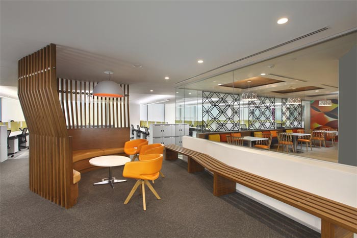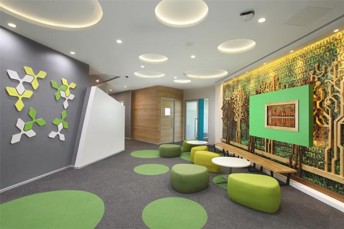 休息区域的设计:设计师在设计的时候,将其安置在一个独立的空间之中,在设计师看来此处是一个隔离的世界,在此处员工可以完全不必理会外界的任何烦恼与喧杂,在此处可以尽情的放松自身,让员工在此处与自己进行对话,不断的提升自身。