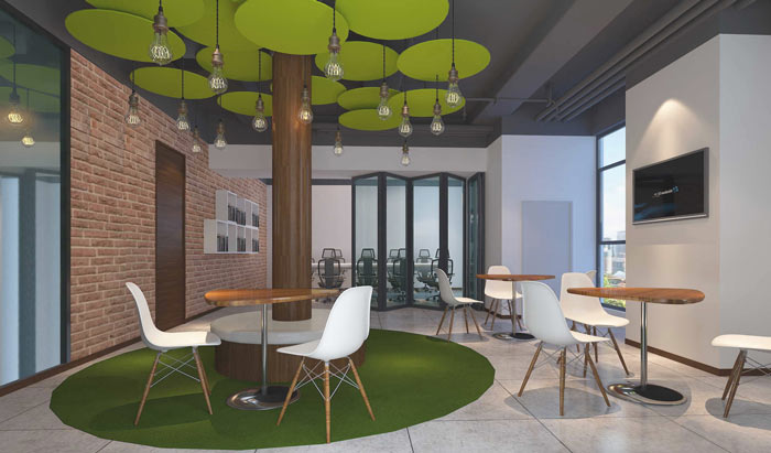 休息区域的设计:设计师将其隔离于空间之外,设计师希望繁杂的工作、浮躁的心灵可以在此地得到净化,让此地宛如一方净土一般让大家在快速发展的社会中,可以有机会、有时间停下来静静,听听来自心中的时间,让自己可以寻找到生活与工作的乐趣。