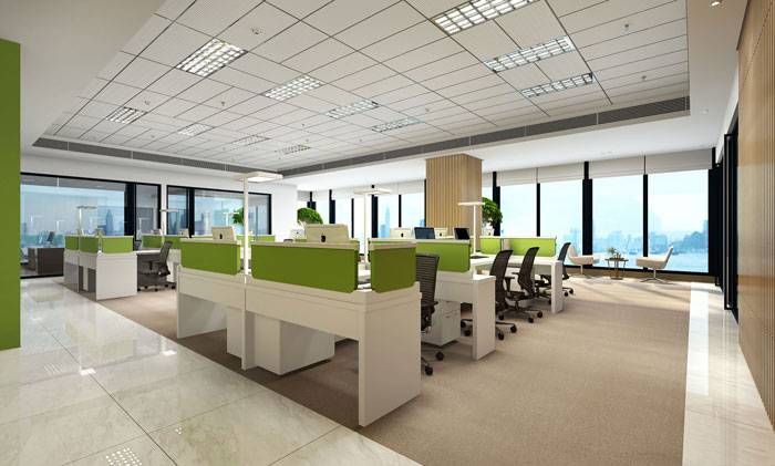 办公区域的设计,留白性的设计本来就很大的想象力,设计师在此处以绿色点缀,给人以万物复苏之像。