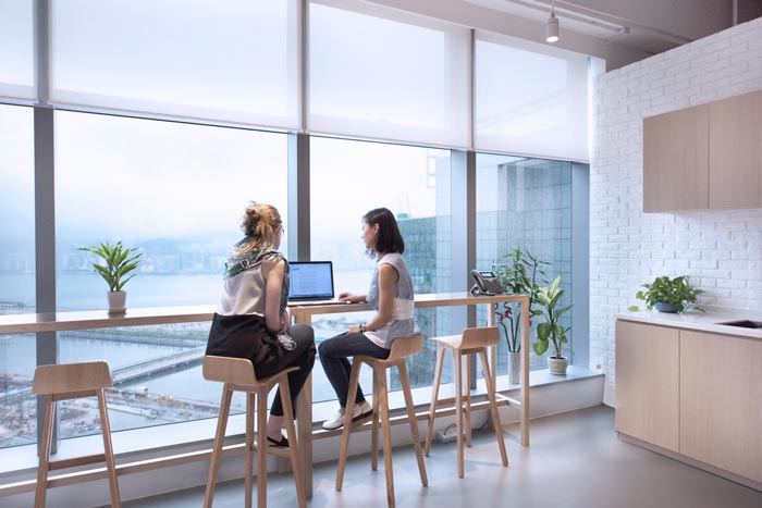 阳台区域的设计:此处办公空间的一个角落,本身是一个眺望城市缩影的好地方,但是设计师不希望此处被白白的浪费掉,故此在设计的时候为其安置了一个办公的属性,一个长长的办工桌为空间增添了新的属性,让员工在此处寻找灵感,在此处欣赏城市的美景,在居高临下的眺望中不断提升自身的视野。