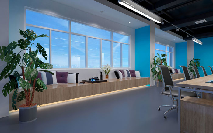 休息区域的设计,设计师以独特的手法与眼光,将休息区域镶嵌在一个意想不到的区域,一则让员工感到温馨,二则展现全新的功能格局。