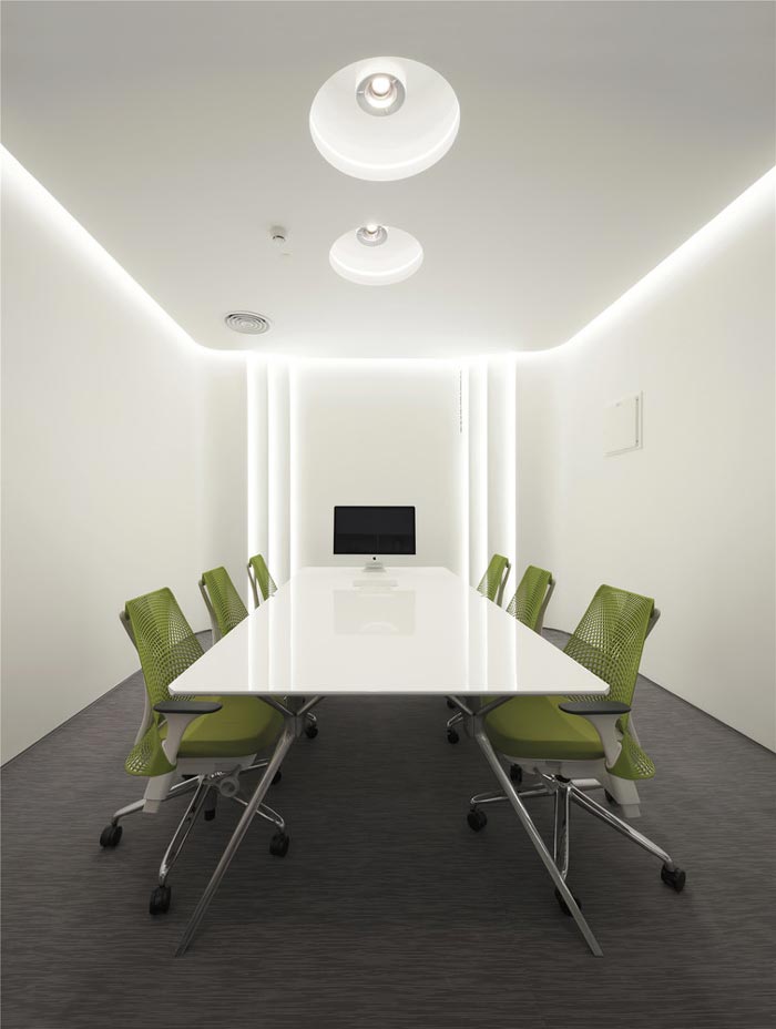 科技公司办公室会议室设计:设计师在设计的时候,采用极简的设计手法,设计师在设计中除了保留会议的基本功能之外,其他的全部予以清除,同时以白色做为背景,白色有向外延伸的作用,白色的延伸之路,达到思想的延伸与扩张。