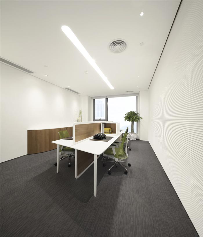 科技公司办公室财务室设计:设计师在设计的时候,同时采用极简的设计手法,会计的工作本身就与数字相关,数字的属性很容易产生混淆,故此设计师以简洁开路,为会计打造一个无压力、身心放松的空间。