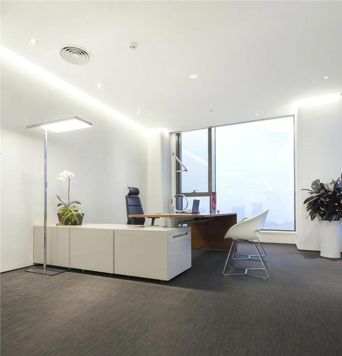 科技公司总经理办公室设计:设计师在设计的时候,与总经理进行了深入的交流,设计师以极简为基点,在此基础上延伸了软装的搭配,此次即保证了总经理的需求得以实现,同时企业的形象在其中展露无遗。