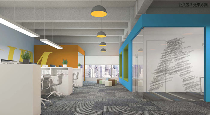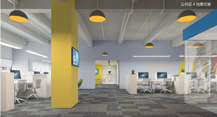 本次为机器人科技公司办公室装修设计项目,设计师在办公室设计的时候,设计师希望可以将办公室装修的简洁一点,因为在设计师看来,简洁的办公空间更利于内部员工的思考与创新,同时简洁的办公空间也可以有效减少空间的阻力,让员工在这样的办公空间之中不受到任何的干扰。