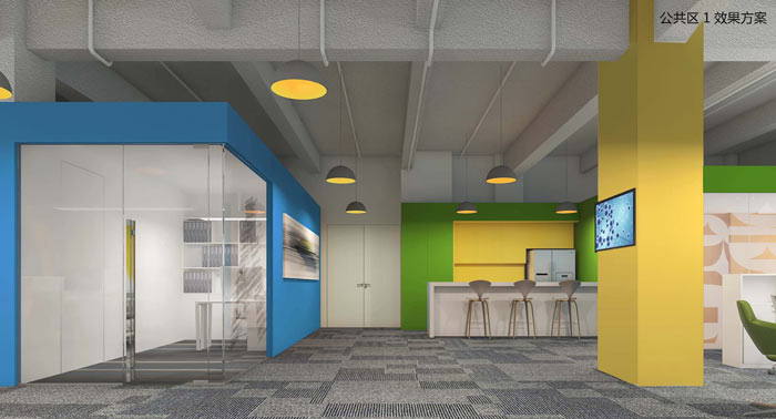 科技公司办公室休息区设计:设计师在设计的时候,将空间的各个空间运用到极致,设计师在此地运用了软装的方便与便利,在此地开启一个灵活的休息区域,供员工与客户在此地休息与放松身心。