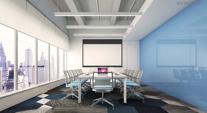 科技公司办公室会议室设计:设计师在设计的时候,将其安置在一个巨大的落地窗户的空间,设计师希望让采光无处不在,设计师希望为企业打造有活力、创意无限的空间,让空间与采光见证企业的发展。