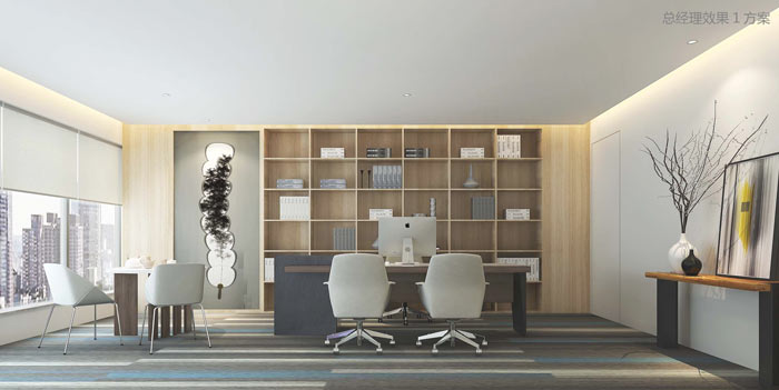 科技公司总经理办公室设计:设计师在设计的时候,将极简推至顶峰,设计师希望为总经理打造简洁的空间,在设计师看来一个利于思考的空间,对于企业的发展至关重要,让总经理在此地见证自己的成长与企业的成长。