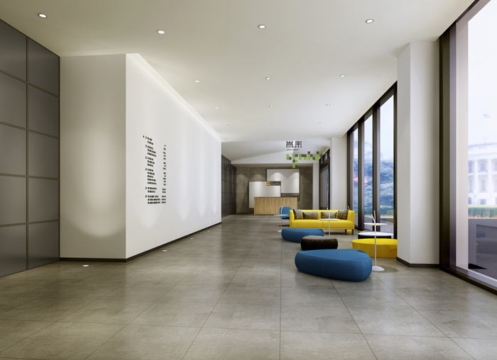 科技公司办公室一楼大厅设计:设计师在一楼大厅原有格局的基础之上做了细微的调整,一点小小的改变展示了企业的待客之道,空间得以利用,同时也打造出温馨的空间氛围。