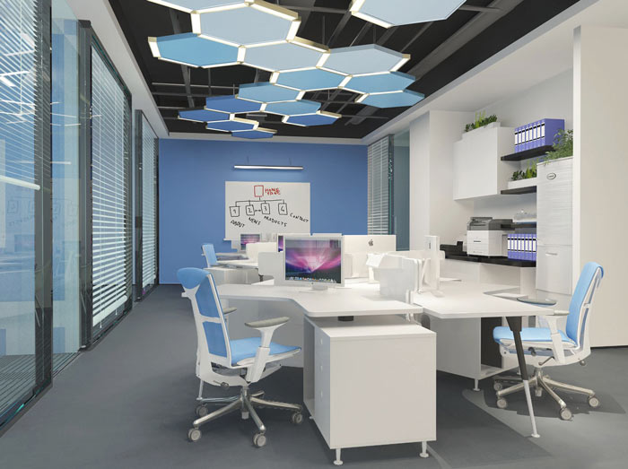科技公司办公室办公区设计:设计师在设计的时候,采用不规则的设计手法,设计师希望让企业员工在这样的空间中,可以感受到空间内部脉络的流动,在空间的脉络上进一步为理清事物之间的脉络做以铺垫。