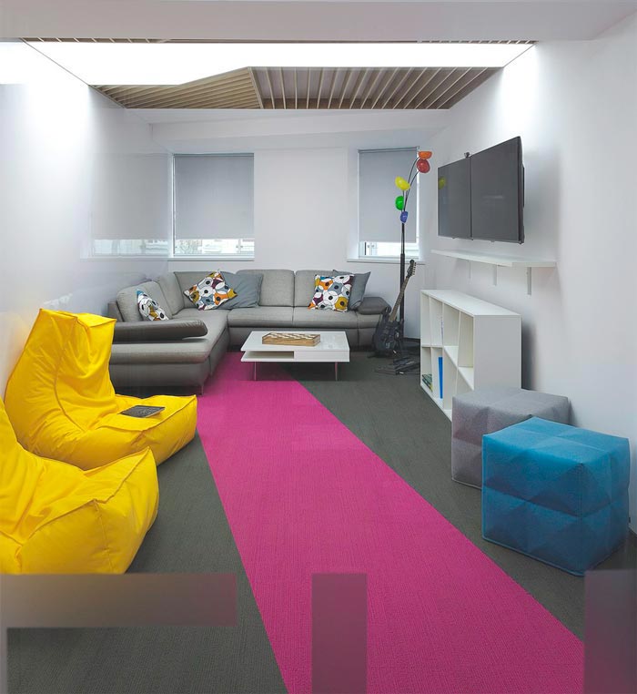 网络公司办公室休息区设计:设计师在设计的时候,对空间设置为独立的空间,在设计师看来这样的设计可以有效的将烦恼与辛苦挡在空间之外,让员工在此地可以完全摒弃外界的喧闹,在此地可以尽情的放松自身,在此地不拘一格。