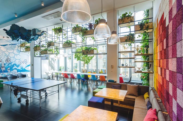 旅游门户办公室接待区设计:设计师在设计的时候,将休息、娱乐、观赏、自然融入其中,在设计师看来此时的客户更需要的时候一些娱乐活动,设计师希望让客户在此处仿佛置身于大自然一般,惬意、舒适、安逸。