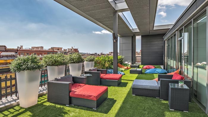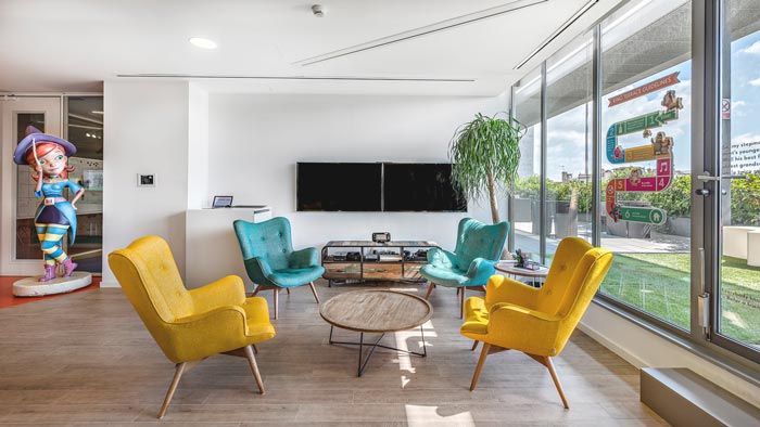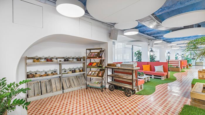 网络游戏公司户外区设计:设计师在设计的时候,邀请了自己的户外设计师朋友了,因为室内与室外的设计,看似相同实则有着质的差距,室外的设计要考虑光源、环境、周围等各种各样的元素,在此处仿佛在度假、仿佛在晒阳光浴、仿佛在沙滩。