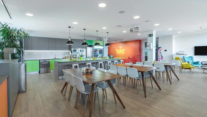 网络游戏公司茶水间设计:设计师在设计的时候,将其与休息区域、交流区域融合在一起,在设计师的眼中茶水间是一个天然的交流场所,在此地员工可以相互的攀谈,在攀谈中增进友情,也可以在无形中增加企业的向心力,这也是设计师设计的初衷,设计师希望关心在空间无处不在。