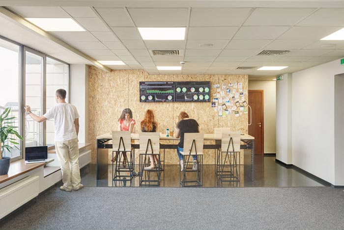 本次为网络安全公司办公室装修设计项目,设计师在办公室设计的时候,考虑到企业的属性故此在设计中采用了外紧内松的设计风格,外紧是因为企业的属性不允许开放式的前台设计,设计师在设计中将其打造成一个相对封闭的空间,这样可以很好的保证企业的正常运行,内松是因为内部别有洞天的意思。
