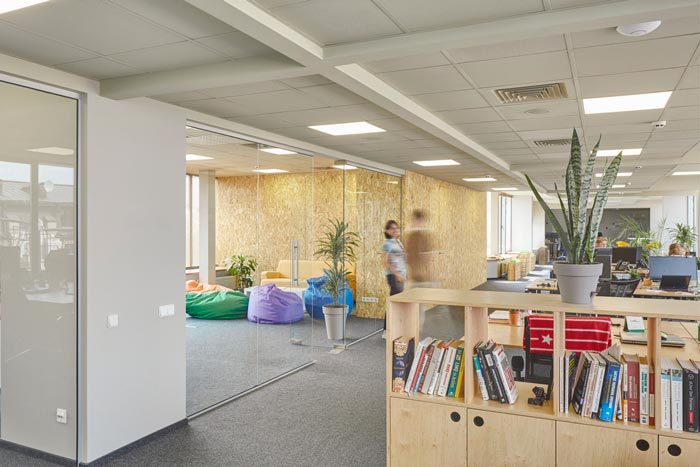 网络公司办公室休息区设计:设计师在设计的时候,没有采用中规中矩的设计,而是采用新型的沙发式座椅,此座椅可以随意拉动,同时沙发的属性也比较随意,让人在上面感觉到像是做到地上以上,这一瞬间仿佛回到了童年,设计师认为人在这样的环境下可以对心灵进行一次冲刷。