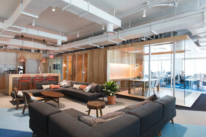 网络公司办公室茶水间设计:设计师在设计的时候,将其与休息区域相融合在一起,设计师希望员工可以在此处休息、交流、玩耍,光源透过透明隔断射入室内空间,暖洋洋的气氛充斥整个空间。