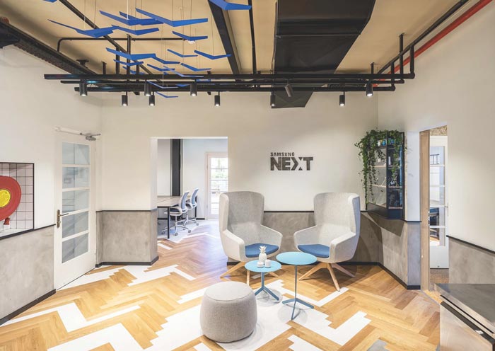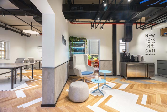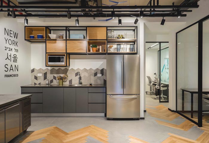网络公司办公室茶水间设计:设计师在设计的时候,将其安置在办公空间的隔壁区域,在设计师的想法之中,茶水间不管是企业的使用还是作为作为待客之用,都是很重要的辅助功能,故此设计师大开方便之门,以此提升各个区域之间的配合。