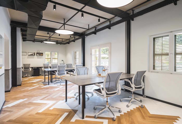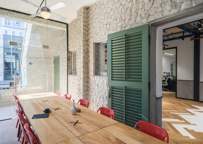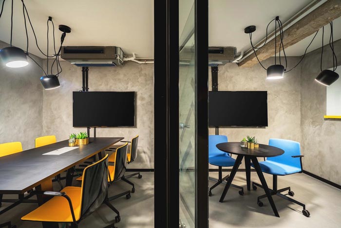 网络公司办公室会议室设计:设计师在设计的时候,将其安置在一处阳台之上,在设计师看来会议室在企业的发展中有着不容忽视的作用,故此设计师希望阳光可以随时折射在空间之中,预示着企业如早起的太阳一样——朝气蓬勃。