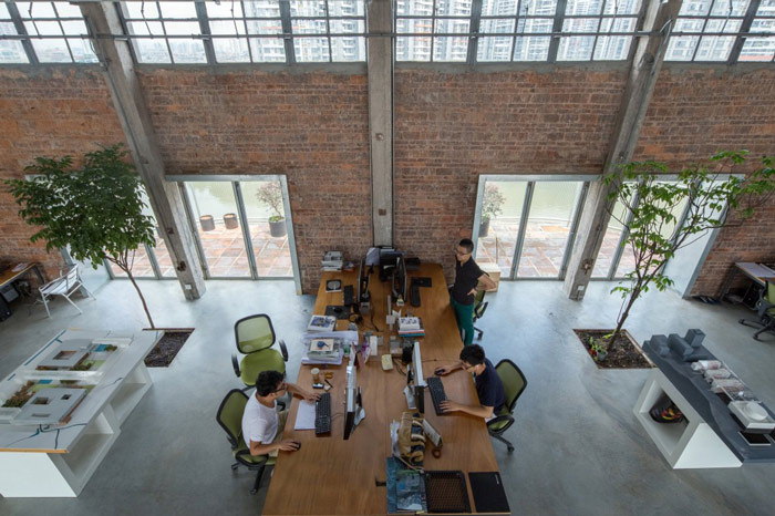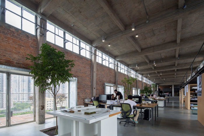 本次厂房LOFT风格办公室装修设计案例讲解到此结束,在本次办公室设计中,设计师利用开放式的设计布局,其中种植小型树木来绿化空间,钢结构的夹层也为工作人员提供了更多可能:非正式会议、讨论区和休息区。