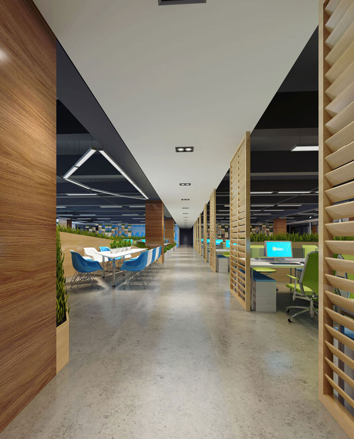 本次办公室设计面积为1050平方,设计师在设计中需要考虑的就是如何将办公室设计的紧随时代潮流,在同时为企业打造人性化办公空间。