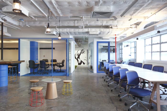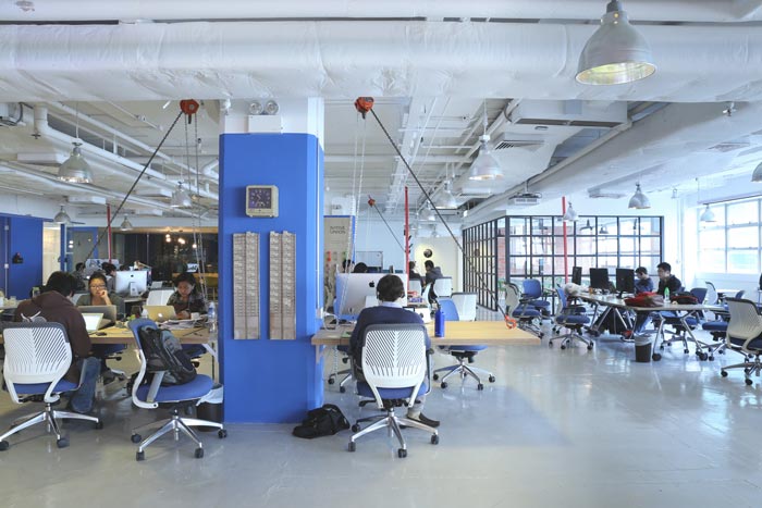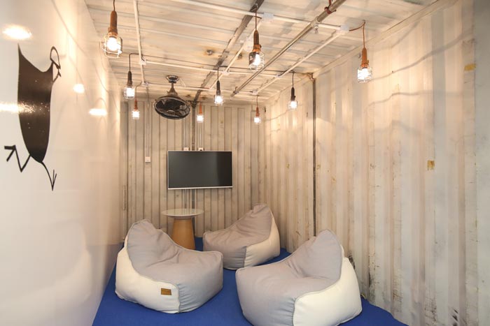 交流区域的设计:此处主要是为了满足思考与交流,在设计师看来创意不是你站在那里就可以想到的,而是需要不断的尝试,只有经过不断的尝试才能够抓住创意的尾巴,而此时也仅仅是触碰到而已,这个时候绝对的放松十分重要,此处让人忘却外界繁杂,进入自己的内心世界不断寻找、不断突破。