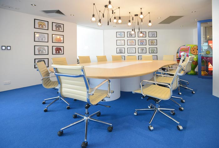 会议室的设计:此处与休息区域融合在一起,设计师将两个加长版的会议桌并排放在一起,目的就是为了满足企业对于会议室的需求,因为企开会常常是以部门为一个单位,做到扁平化的讨论与汇报,以层层讨论、层层汇报的方式集大成与一体,即增加了汇报的效率,也增加了讨论的深度。