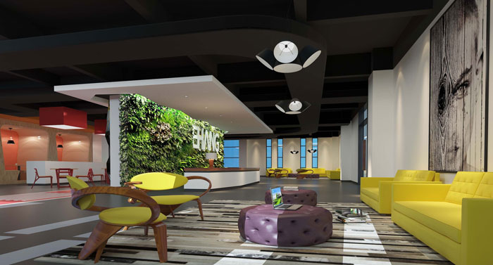 本次办公室设计,设计师的主要设计手法就是希望将室外环境在室内得以展现、重现,这与业主本身的想法也极为相似,最后设计师将设计风格定位于:开放、趣味、环保。