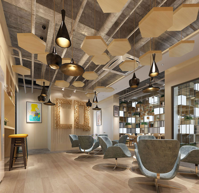 会议区办公室的设计,设计师将光效弄得特别亮,很有潮气活力,很有层次感,有由浅至深地了解一个品牌的寓意。