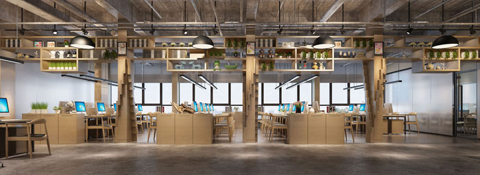在办公区域设计的时候,设计师采用了由浅至深的颜色分布,表现企业的阳光积极,这也能表现电子商务行业公司办公室装修的时尚元素。