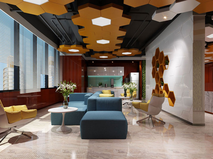 本次办公室设计面积在750平方左右,设计师认为在生活方式多元化和工作追求高效快捷的今天,“朝九晚五+格子间”的工作模式不再是都市标配,本次设计师希望打造以创意、灵活多变为元素的办公空间。