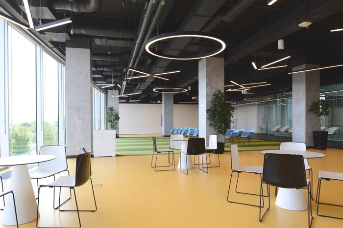 休息区域的设计:设计师在设计的时候,将其与培训区域合为一体,在设计师看来培训区域不会天天用到,故此设计师希望为此处带来活力,在此处给人的第一感觉就是放松,这样的感觉在如今的时代甚是难得,设计师希望让员工在此处与大自然融为一体,进入那梦寐以求的静心状态。