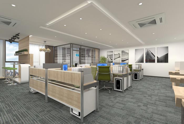 办公区域的设计,设计师在设计的时候,将其安置在空间的中心区域,这样的设计一方面可以保证动线与动线的联系更加畅通,另一方面这样的设计利用员工之间的相互沟通与交流。