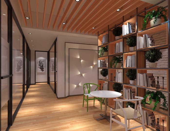 接待区域的设计,设计师在设计的时候,将其安置在办公室区域的一侧,整个空间按照4:6的比例对空间进行分离,4分为办公区域、6分为接待区域、休息区域、动线的结合,这样的设计将室内的空间有效的、合理的结合并加以利用。