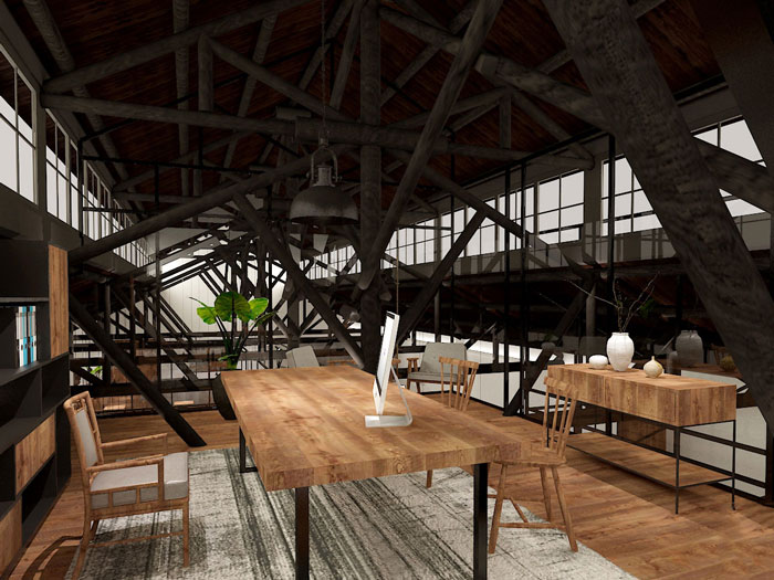 本次为创业公司复式办公室装修设计项目,业主租下的是一个小型旧工厂,在设计师的设计手法下,空间一份为二,分为上下两层,既节约了成本,又扩大了办公空间,将性价比发挥到最大。