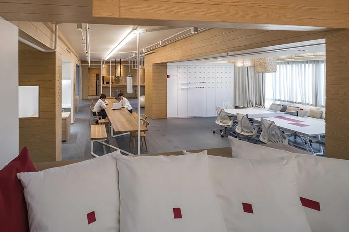 IT公司办公室办公区设计:固定办公区与活动办公区相邻而处,这样的布局方式就是希望让员工有多个办公区域,办公区不固定在一起,就是希望让员工自己主导自己的工作,这样的办公效率事半功倍。