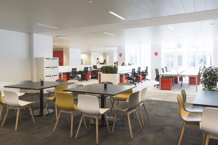 休息区域的设计:设计师在设计中参考了释放的理念,也是设计师的一种尝试,在设计师看来休息区域本来就是要为员工一个无压力的空间,故此设计师将设计完全删掉留下一个空空的空间,让空间有了更多的可能,将软装引入空间,让员工随自己的爱好进行摆设,也为员工营造了一个无拘无束的空间。