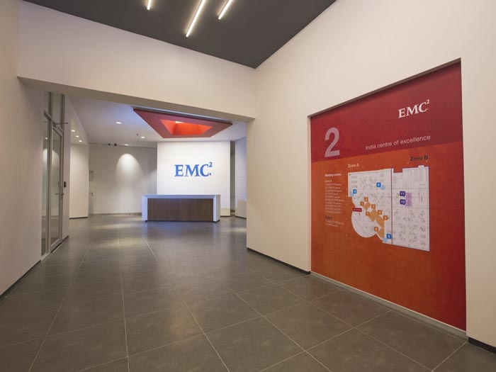 前台的设计:设计师在实地考察的时候,着重在强调空间格局的相互搭配,前台方位与进门互成夹角呈45度角展示,同时logo背景墙的设计以白色为底纹,因为白色的属性就是向外延伸,在白色的背景墙上配有蓝色的logo商标,让人联想到蔚蓝的天空与白色的云朵,对企业有一种莫名的好感。