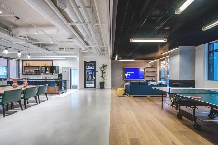 茶水间的设计:设计师在设计的时候,将其安置在靠窗的空间之中,在空间的设计上设计师采用咖啡厅的设计手法,设计师主要是希望营造咖啡厅式的空间氛围,让员工在此处可以远离工作的压力,让自身融入温馨的空间之中,让员工可以在此处休息、思考、归零。